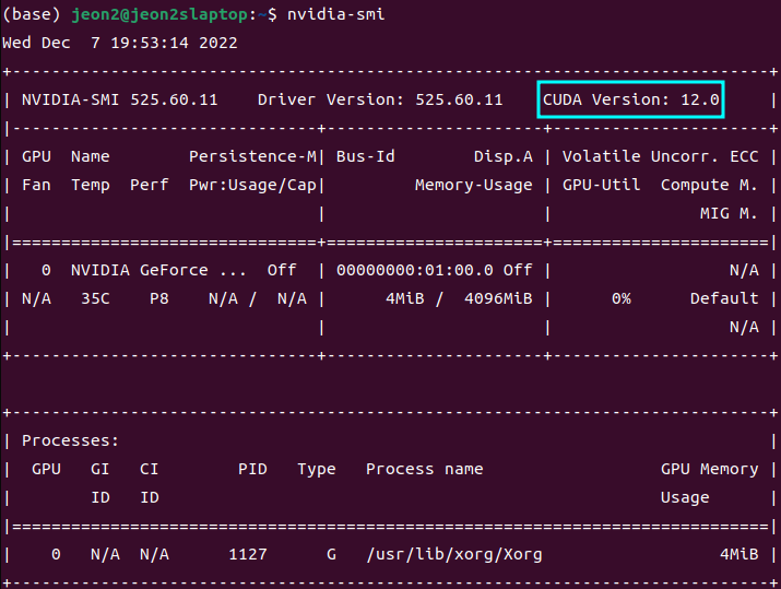 설치 이후 재부팅을 하면 nvidia-smi 명령어가 정상 작동한다.