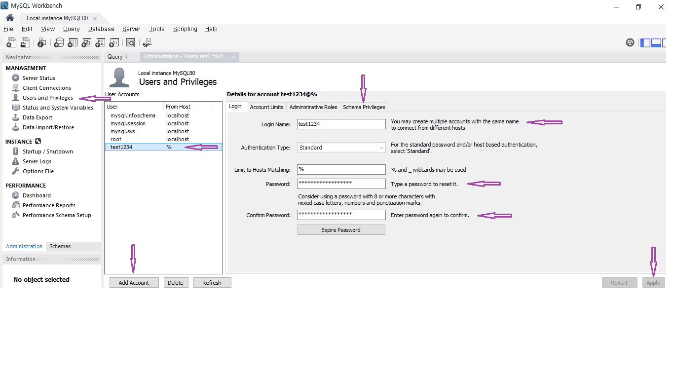 MySQL에 신규 계정을 만들고 제한된 권한을 부여하여 root 계정(관리자)과 DB 분리해서 관리하기