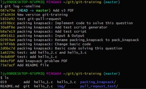 cd /workspace # Rebase 실습할 GitHub 저장소 소스폴더 다운받고 이동