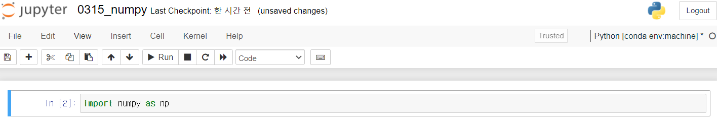 Jupyter Notebook에서 Numpy 제대로 설치되었는지 확인. alias는 np로 통일