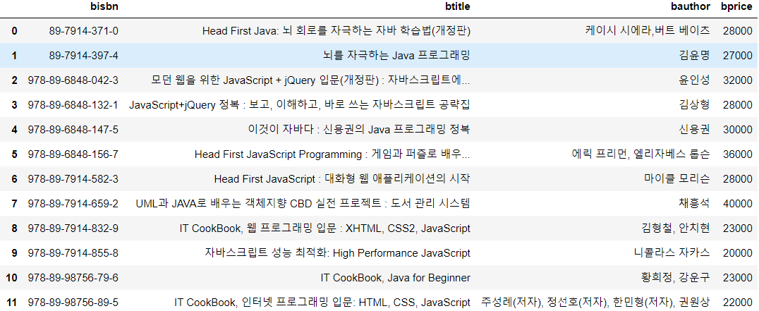 sql = "SELECT bisbn, btitle, bauthor, bprice FROM book WHERE btitle LIKE '%java%'"