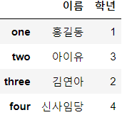 # print(df['이름']) # Series가 출력됨