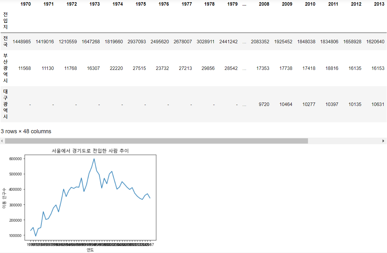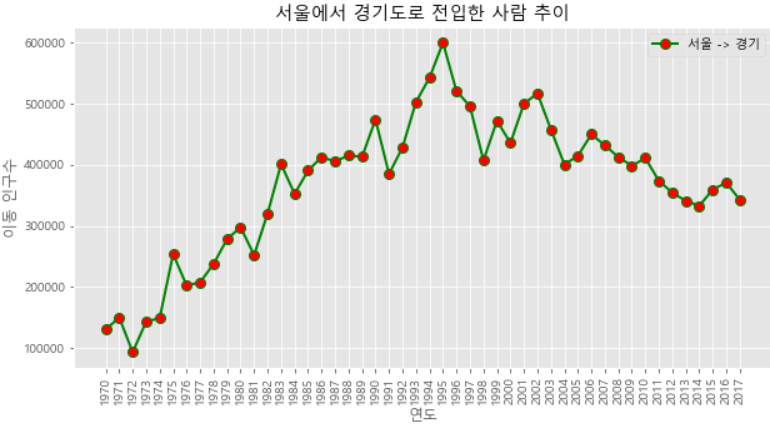 통계청의 전입/전출 데이터를 사용해 Line plot을 만들어보자
