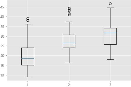 4. Box plot : 4분위 값을 이용. 데이터의 분포를 확인할 수 있음. outlier(이상치)가 그래프에 표현됨