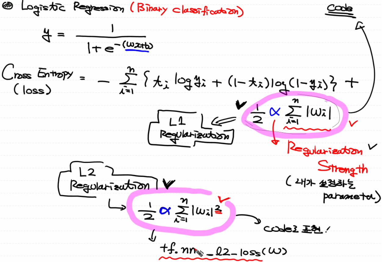 - 3. 규제(Regularization. L1 - Lasso Regression, L2 - Ridge Regression)를 통해 loss 값을 인위적으로 크게 하여 Weight(W)의 값이 너무 크지 않도록 조절
