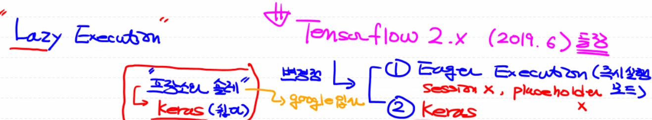 2.x 버전은 eager execution(즉시 실행 모드)을 지원하기 때문에 session 초기화 코드와 placeholder가 불필요하고 일반적인 프로그래밍처럼 사용할 수 있음