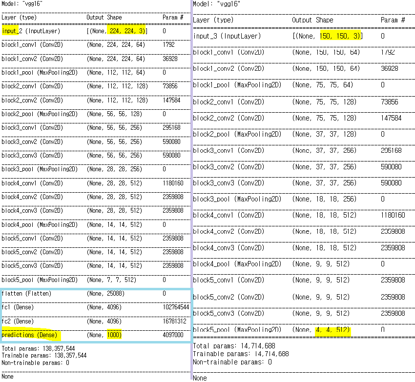 input_shape=(150,150,3)) # include_top=False이면 입력 데이터의 사이즈를 넣어줘야 함