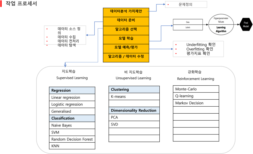 1. 머신러닝 작업 순서 및 학습 방법 별 대표적인 알고리즘들
