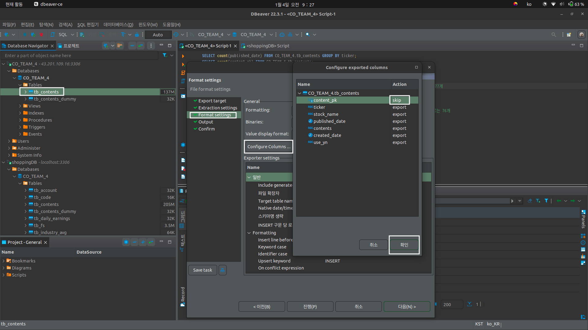 2. dbeaver 테이블 내보내기_컬럼 제외
