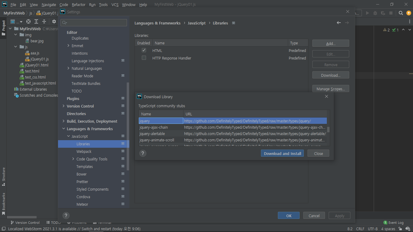 WebStorm에 jQuery Library 추가