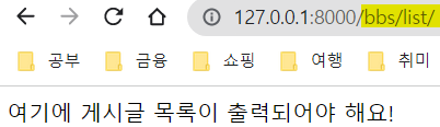 path('list/', views.b_list, name='b_list') # http://127.0.0.1:8000/bbs/list/