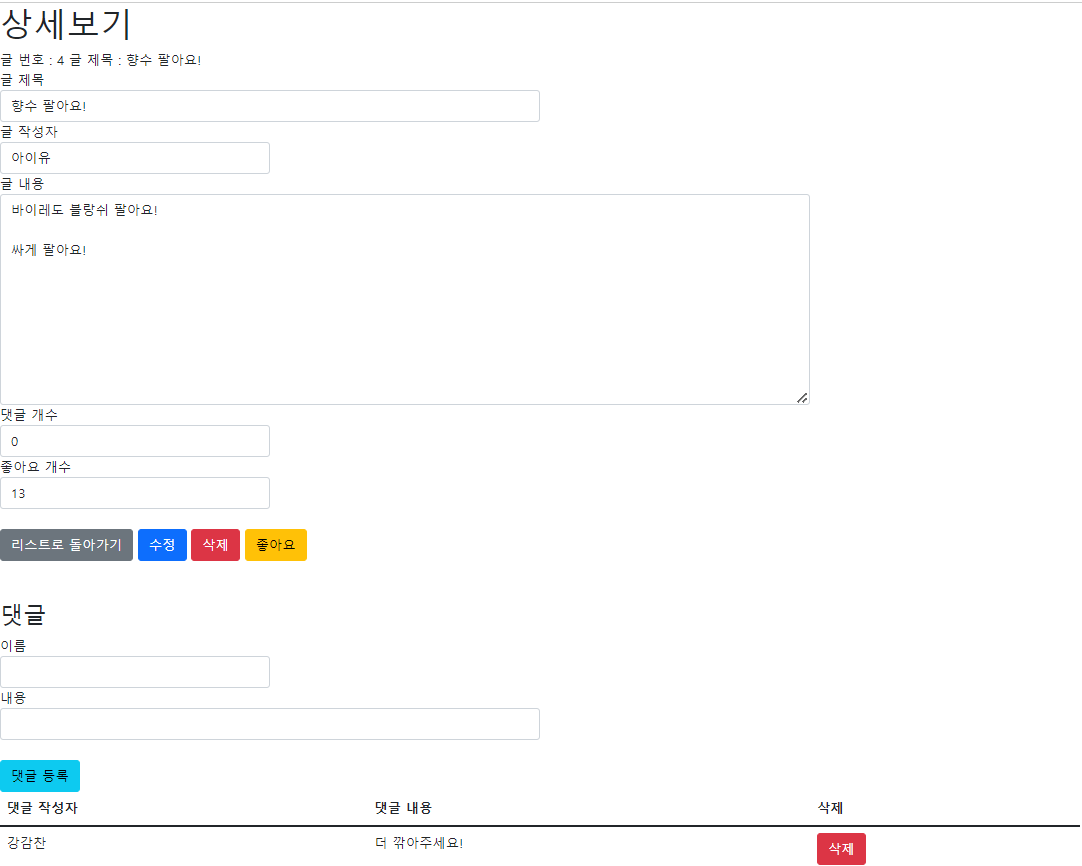 HTML로 직접 댓글을 입력하는 게 아닌 상세보기 페이지에서 입력할 수 있도록 변경