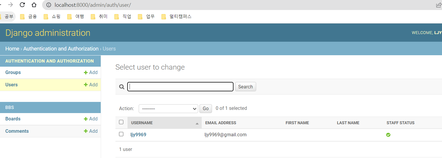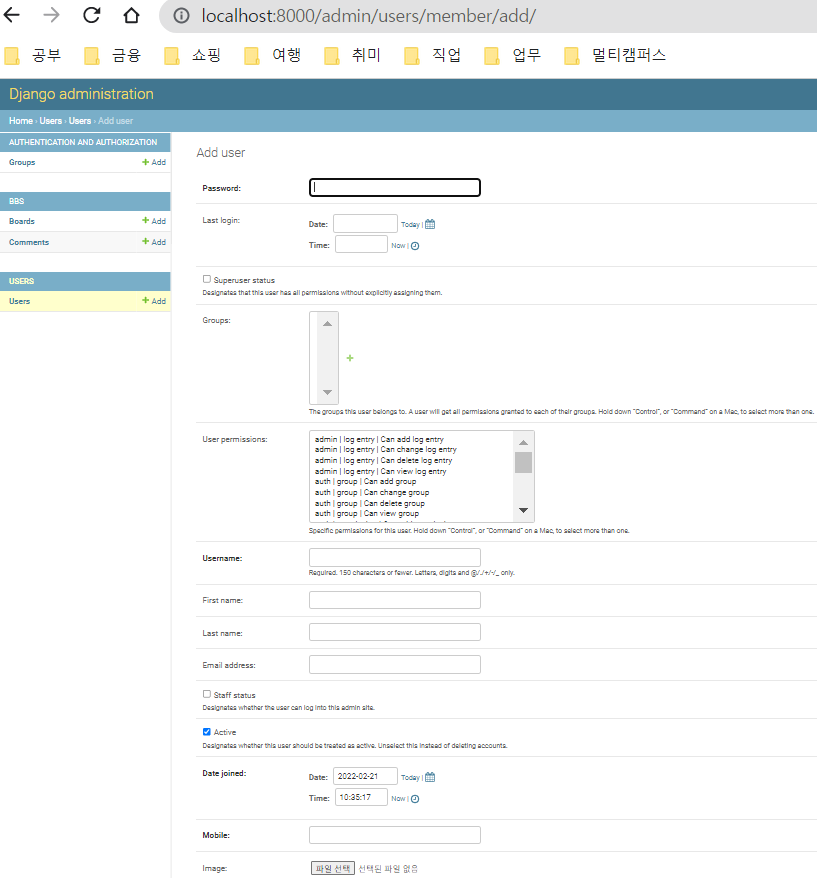 오늘은 Django에서 제공해주는 사용자 및 권한 관리 기능을 확장해서 사용한다.