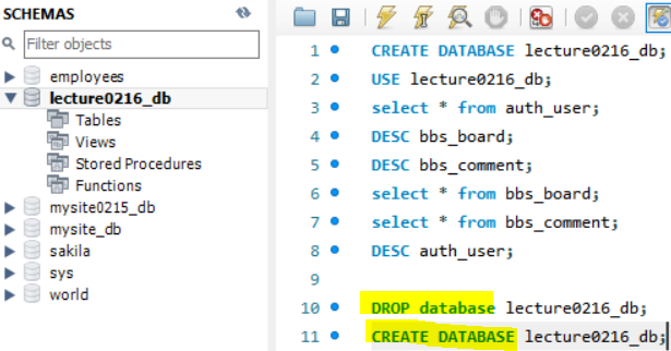 Schema가 새로 정의되었기 때문에 MySQL에서 DB 날리고 새로 만들기