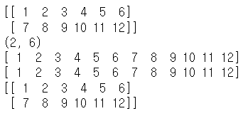 print(arr.shape) # 2행 6열 [[ 1 2 3 4 5 6]