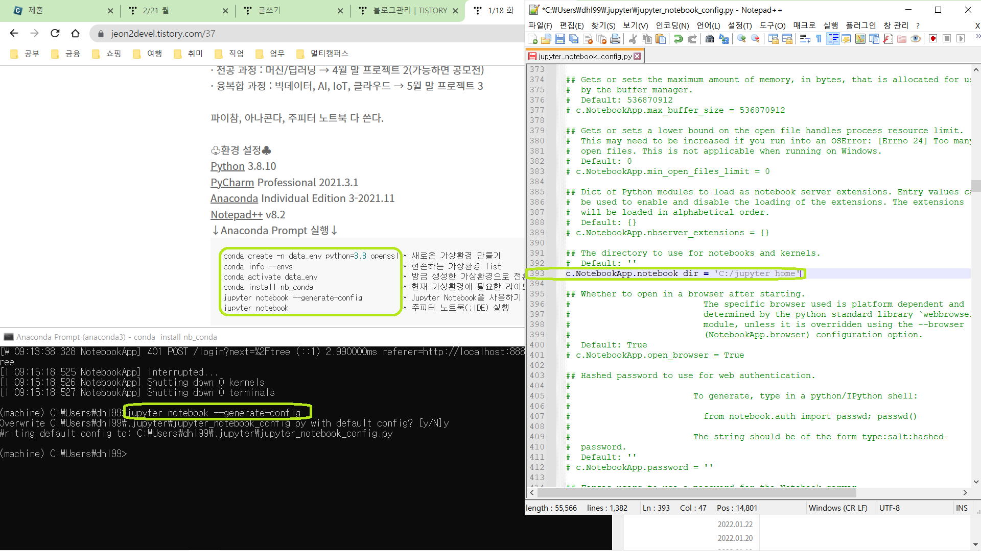 1. Anaconda Prompt에서 Jupyter notebook 실행