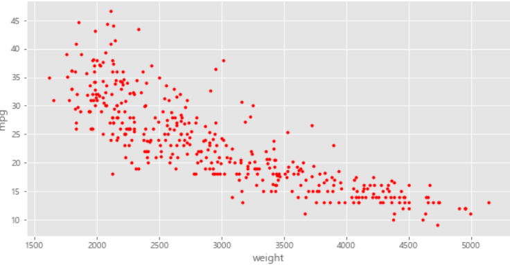 df.columns = ['mpg', 'cylinders', 'displacement', 'horsepower', 'weight', 'acceleration', 'year', 'origin', 'name']