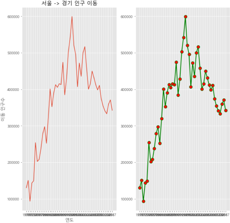 통계청의 전입/전출 데이터를 사용해 Line plot을 만들어보자