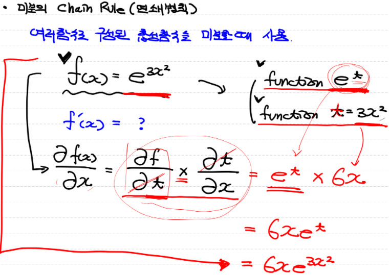 4. 미분의 Chain Rule(연쇄 법칙) : 여러 함수로 구성된 합성함수를 미분할 때 사용