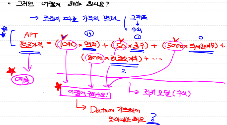 1. Regression(회귀) : 데이터에 영향을 주는 조건들의 영향력을 고려해서, 데이터에 대한 조건부 평균을 구하는 기법
