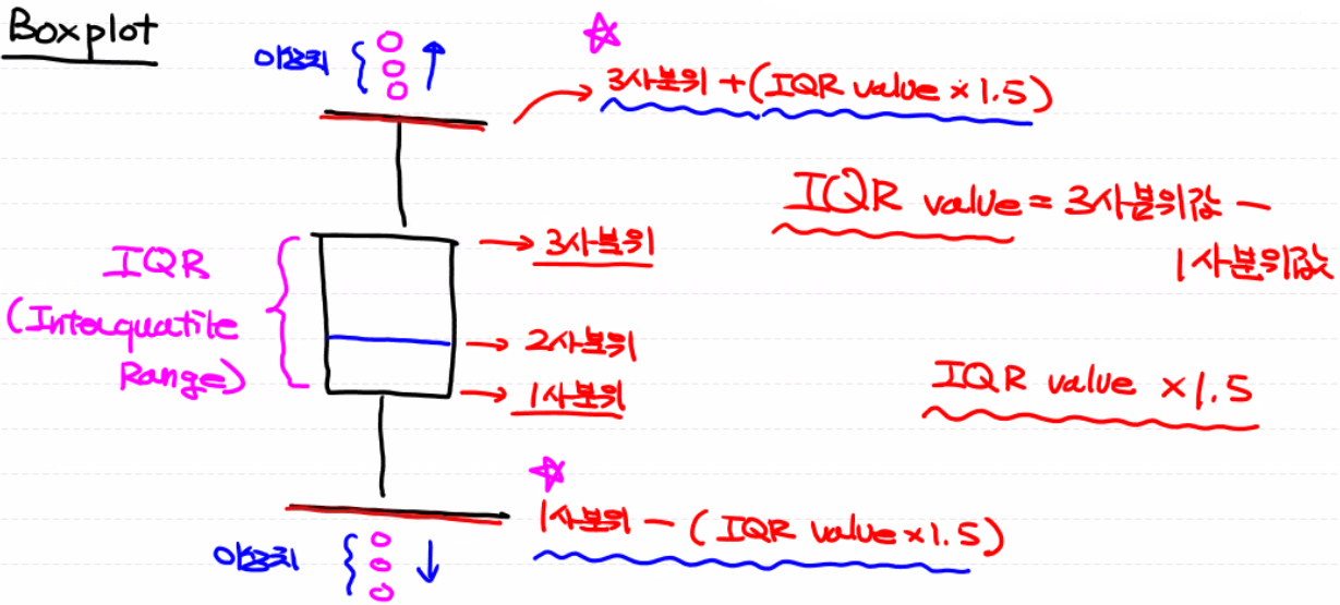 IQR value(3Q - 1Q) × 1.5 경계 밖에 있는 것들을 확인
