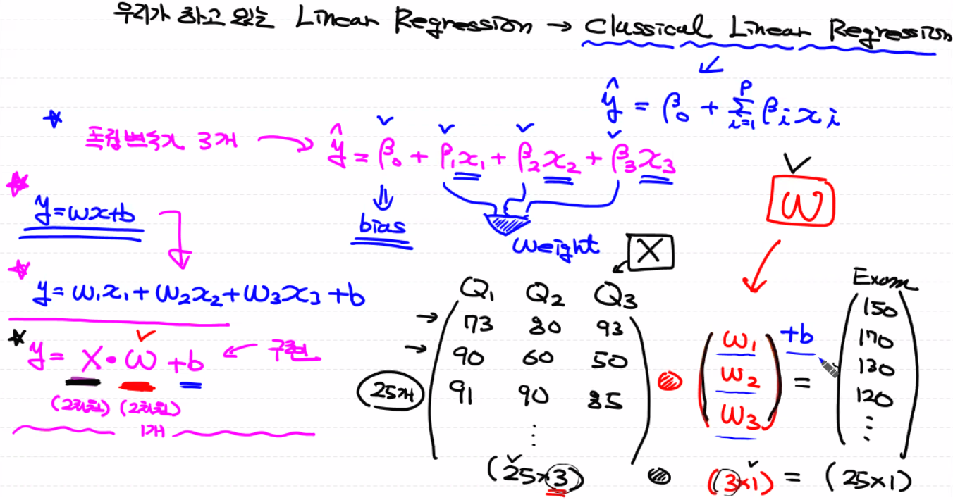 독립변수가 늘어나면, W(가중치)도 여러 개가 됨