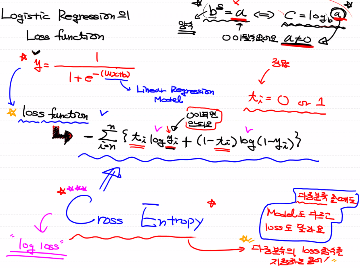 → Logistic Regression에 대한 loss func 수식 변형함(Cross-Entropy 혹은 log loss)