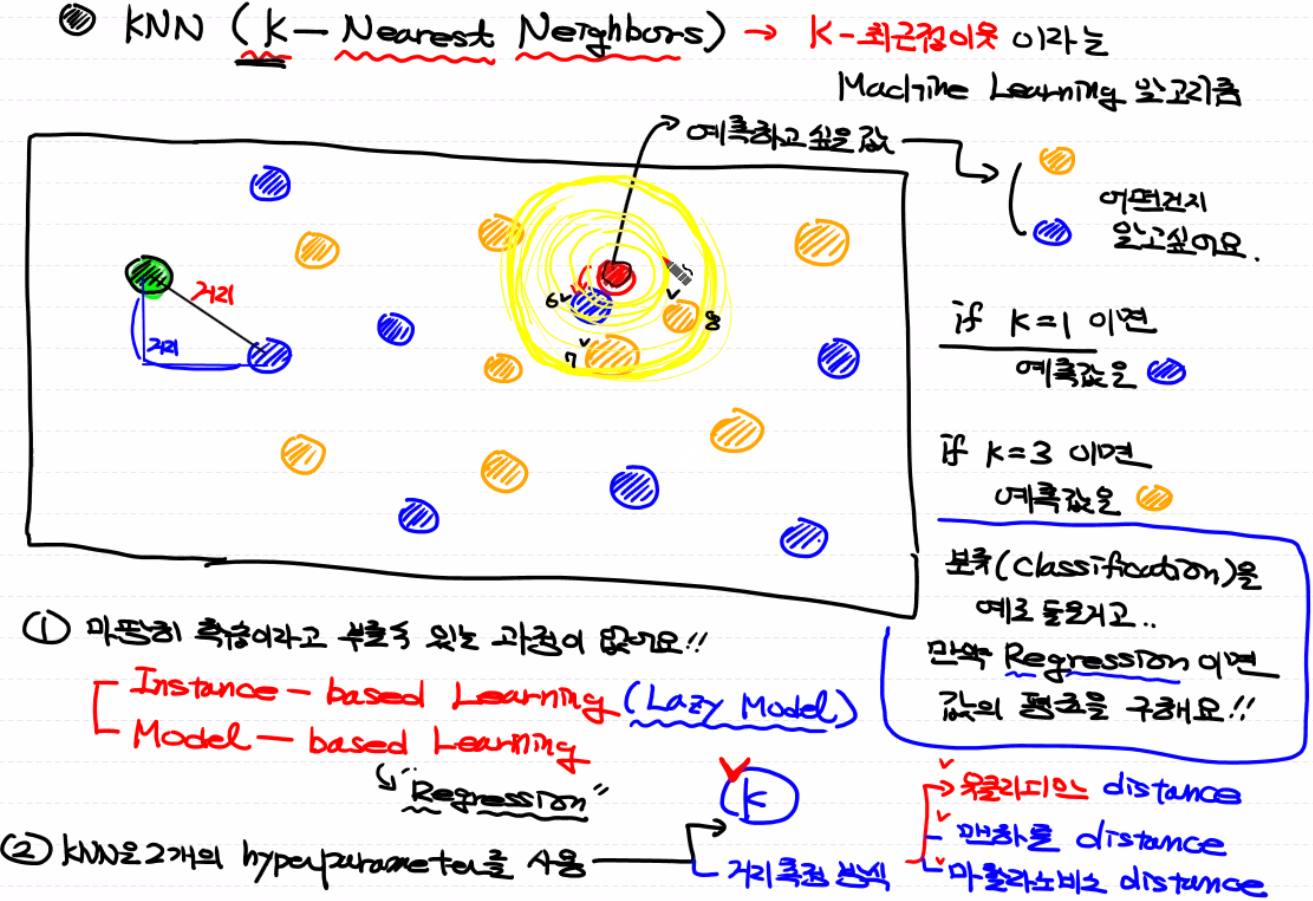 KNN(K-Nearest Neighbors, K-최근접 이웃) :
