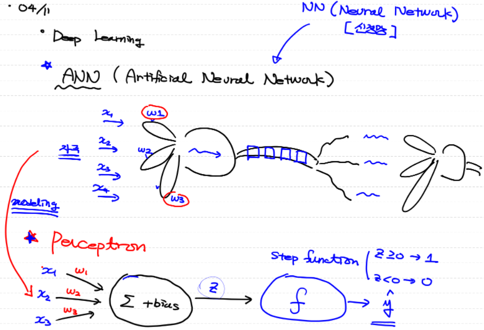 Deep Learning : 한 개의 Logistic Regression을 표현하는 node가 서로 연결되어 있는 신경망 구조를 바탕으로 한 개의 입력층, 한 개 이상의 은닉층(많을수록 학습이 잘 됨. 1~3개가 적당), 한 개의 출력층으로 이루어짐