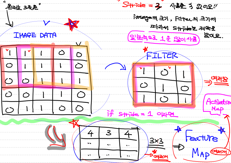 Stride : filter가 이동하는 거리. 일반적으로 1을 사용함