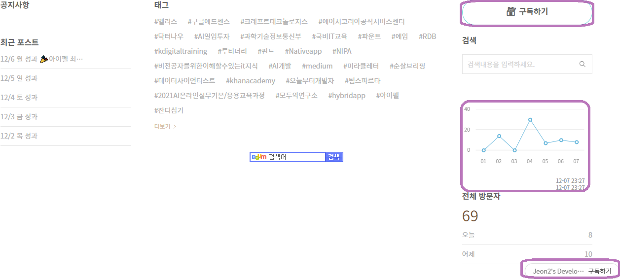 블로그 홈 화면의 전체 방문자 숫자 위에 그래프를 넣어 방문자 통계를 확인하고 싶다.