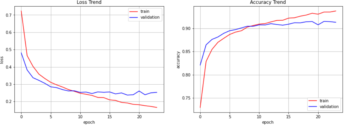 # model.evaluate(norm_test_x_data.reshape(-1,28,28,1), test_t_data) # loss: 0.2410 - accuracy: 0.9135