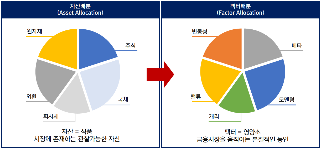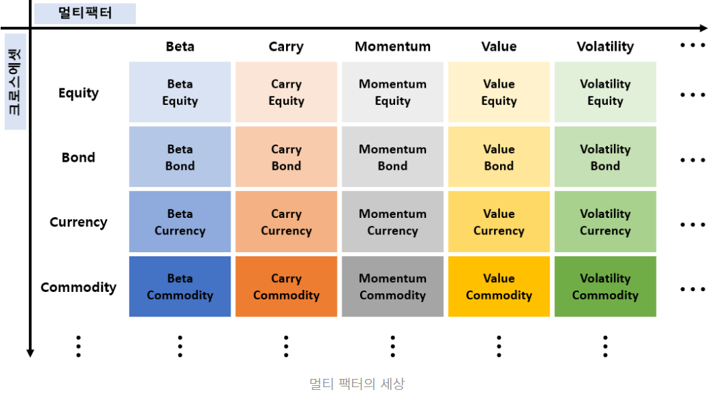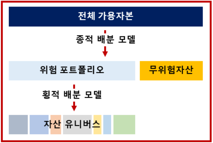 자산 유니버스를 활용해 어떻게 포트폴리오를 구성해야 하는가. 다만 퀀트는 자산의 관점이 아닌 팩터의 관점에서 활용함(자산 배분_자산 매수 vs. 팩터 배분_팩터에 대한 숏/롱 익스포져). 여기서 팩터는 금융시장에서 수익과 리스크의 본질적인 원천을 의미함.