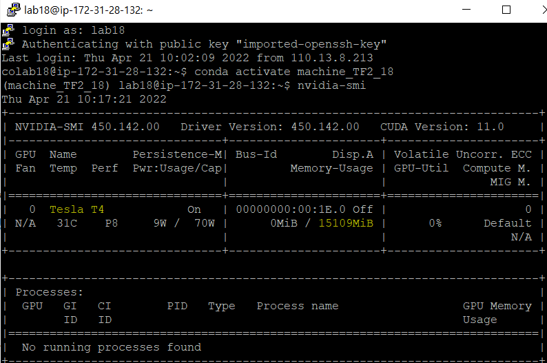 AWS 서버 Tensorflow GPU 사용여부 확인
