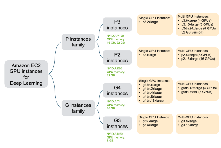 멀캠에서 제공해주는 AWS로 사용 가능한 GPU(EC2 인스턴스)는 P 제품군과 G 제품군 중 G4!